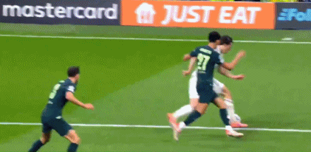 第6分钟,小尴尬,罗德里戈带球出了边线